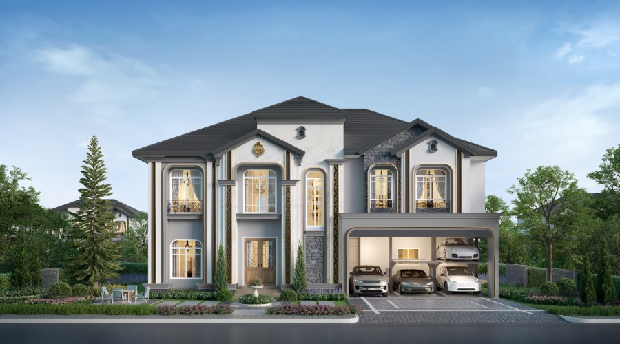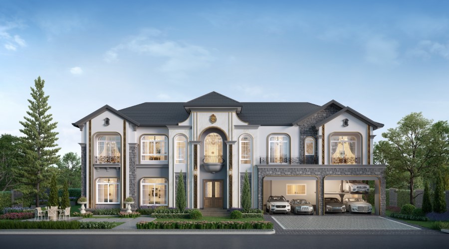 3. Versailles พื้นที่ใช้สอย 586 ตร.ม. 6 ห้องนอน 6 ห้องน้ำ 2 ห้องแม่บ้าน 1 ห้องพระ 1 Glass house ที่จอดรถ 4-8 คัน