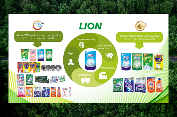 ไลอ้อน ประเทศไทย เป็นผู้ผลิตน้ำยาล้างจานรายแรกของไทยที่ได้รับการรับรอง ฉลากลดโลกร้อน (Carbon Footprint Reduction: CFR) จากองค์การบริหารจัดการก๊าซเรือนกระจก ตั้งแต่ปี 2014 ทุกผลิตภัณฑ์ของไลอ้อนถูกพัฒนาตามแนวทางสู่ “ผลิตภัณฑ์ลดโลกร้อน” ช่วยลดการปล่อยคาร์บอนในทุกขั้นตอน ตั้งแต่การผลิตจนถึงผู้บริโภค อาทิ ผลิตภัณฑ์ล้างจาน ไลปอนเอฟ สูตรอนามัย, ไลปอนกลิ่นชามะนาว, ผลิตภัณฑ์ซักผ้าโปร เปาวินวอซ เปาซิลเวอร์นาโน เปาเอ็มวอซ ผลิตภัณฑ์ดูแลร่างกาย ซอลส์ และโชกุบุสซึ