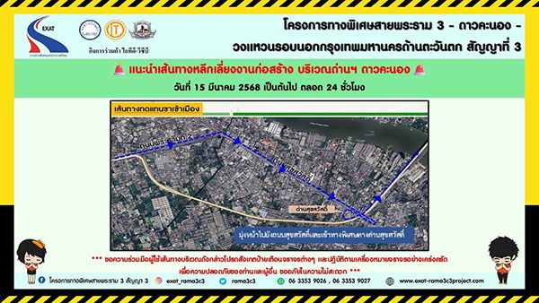 การทางพิเศษแห่งประเทศไทย (กทพ.) ขอแจ้งปิดทางขึ้น-ลง ทางพิเศษเฉลิมมหานครชั่วคราว เนื่องจากเกิดเหตุโครงสร้างที่อยู่ระหว่างการก่อสร้างเกิดการทรุดตัว บริเวณหน้าด่านฯ ดาวคะนอง พื้นที่การก่อสร้างโครงการทางพิเศษสายพระราม 3 – ดาวคะนอง – วงแหวนรอบนอกกรุงเทพมหานครด้านตะวันตก สัญญาที่ 3 ขอแจ้งประชาชนที่ต้องการ ใช้ทางพิเศษเข้าและออกเมืองดังนี้ เข้าเมือง มุ่งหน้าไปแยกบางปะแก้ว และใช้ถนนสุขสวัสดิ์ เพื่อไปใช้ด่านฯ สุขสวัสดิ์ ออกเมือง ใช้สะพานพระราม 9 ลงสุขสวัสดิ์ มุ่งหน้าไปถนนพระราม 2 กทพ. ต้องขออภัยในความไม่สะดวกมา ณ โอกาสนี้