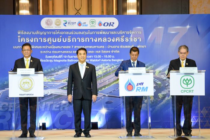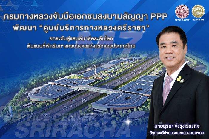 วันนี้ (19 กันยายน 2567) นายสุริยะ จึงรุ่งเรืองกิจ รองนายกรัฐมนตรี และรัฐมนตรีว่าการกระทรวงคมนาคมเป็นประธานและสักขีพยานในพิธีลงนามสัญญาการให้เอกชนร่วมลงทุนในการพัฒนาและบริหารจัดการโครงการศูนย์บริการทางหลวงศรีราชาบนทางหลวงพิเศษระหว่างเมืองหมายเลข 7 สายกรุงเทพมหานคร – บ้านฉาง ช่วงชลบุรี –พัทยา ระหว่าง กรมทางหลวง และ บริษัท เดอะ เรส วิลเลจ จํากัด โดยมี นางมนพร เจริญศรี รัฐมนตรีช่วยว่าการกระทรวงคมนาคม, นายชยธรรม์ พรหมศร ปลัดกระทรวงคมนาคม, นายมนตรี เดชาสกุลสม, นายสรพงศ์ ไพฑูรย์พงษ์ รองปลัดกระทรวงคมนาคม, นายสราวุธ ทรงศิวิไล อธิบดีกรมทางหลวง, คณะผู้บริหารกระทรวงคมนาคม, ผู้บริหารและผู้แทนบริษัท เดอะ เรส วิลเลจ จํากัด, บริษัท ปตท. บริหารธุรกิจค้าปลีก จํากัด, บริษัท เจริญโภคภัณฑ์วิศวกรรม จํากัด และสื่อมวลชนเข้าร่วม ณ โรงแรม Waldorf Astoria Bangkok