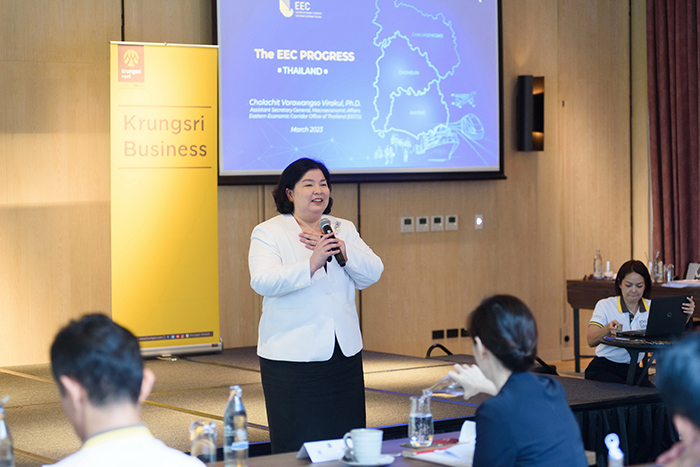 กรุงเทพฯ (3 พฤษภาคม 2566) – กรุงศรี (ธนาคารกรุงศรีอยุธยา จำกัด (มหาชน)) จัดงานสัมมนา Krungsri Business Exclusive Talk : 2023 Thailand Vision สำหรับลูกค้าธุรกิจขนาดใหญ่และวาณิชธนกิจ โดยได้รับเกียรติจากผู้เชี่ยวชาญจากวิจัยกรุงศรีที่มาอัพเดทสถานการณ์เศรษฐกิจมหภาค แนวโน้มธุรกิจและอุตสาหกรรมของประเทศไทยในปี 2566 ร่วมด้วยผู้บริหารระดับสูงจากสำนักงานคณะกรรมการนโยบายเขตพัฒนาพิเศษภาคตะวันออกมาร่วมแบ่งปันและแลกเปลี่ยนมุมมองเกี่ยวกับทิศทางและแผนการลงทุนใน EEC รวมทั้งแนวทางการเพิ่มขีดความสามารถการแข่งขันของธุรกิจในปีนี้