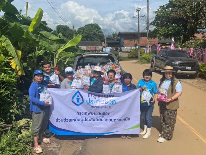 กรุงเทพประกันชีวิต ตระหนักถึงความเดือดร้อนของพี่น้องประชาชนในพื้นที่ภาคเหนือที่ประสบภัยน้ำท่วม โดยได้นำทีมพนักงานสาขาและตัวแทนประกันชีวิตลงพื้นที่ส่งมอบความช่วยเหลือแก่ผู้ที่ได้รับผลกระทบ มุ่งเน้นการให้ความช่วยเหลืออย่างยั่งยืน โดยได้มอบสิ่งของจำเป็น เช่น อาหารแห้ง น้ำดื่ม อุปกรณ์การดำรงชีวิตพื้นฐาน รวมถึงอุปกรณ์ทำความสะอาดและของใช้อื่น ๆ ที่จำเป็น เพื่อสร้างกำลังใจแก่ชุมชนและผู้ประสบภัยน้ำท่วม ณ อำเภอแม่สาย และ อำเภอเมือง จังหวัดเชียงราย เมื่อเร็ว ๆ นี้