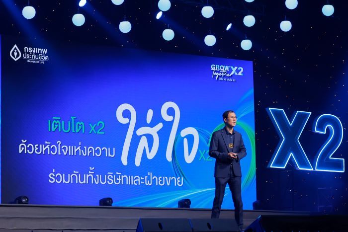 กรุงเทพประกันชีวิต จัดงานสัมมนาใหญ่ฝ่ายขายประจำปี 2567 “Bangkok Life Agency Annual Seminar 2024” ภายใต้แนวคิด Grow X2 Together ใส่ใจ X2 เติบโต X2 “เพราะทุกสิ่งที่ทำด้วยใจ อะไรก็ทำได้” เพื่อประกาศ ทิศทางและนโยบายสนับสนุน “ใส่ใจ 2 เท่า เติบโต 2 เท่าโดยมีสุดยอดนักขาย กรุงเทพประกันชีวิตที่มีผลงานยอดเยี่ยม และมีความมุ่งมั่นทุ่มเทในการทำงานร่วมรับฟัง พร้อมด้วยตัวแทนและที่ปรึกษาทางการเงินเข้าร่วมงานกว่า 1,300 คนเพื่อเพิ่มพูนทักษะความรู้ในการทำงานจากวิทยากรชั้นนำ โดยมี ดร.ศิริ การเจริญดี ประธานกรรมการ นายโชน โสภณพนิช กรรมการผู้จัดการใหญ่และประธานเจ้าหน้าที่บริหาร นาย จักรพงศ์ แสงแก้ว ผู้บริหารสายงานตัวแทนและที่ปรึกษาทางการเงิน กรรมการ และ คณะผู้บริหารระดับสูง ร่วมพิธีเปิด ณ โรงแรม รอยัล คลิฟ พัทยา
