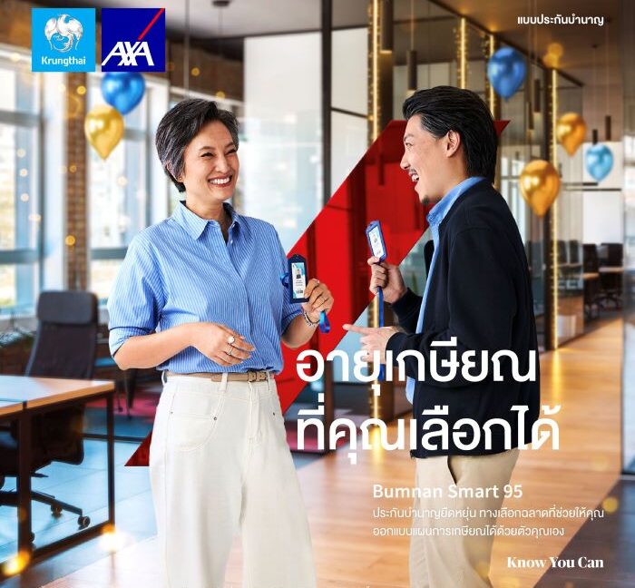 บริษัท กรุงไทย-แอกซ่า ประกันชีวิต จำกัด (มหาชน) ตอกย้ำจุดยืนการผู้นำธุรกิจประกันชีวิตและสุขภาพ เปิดตัวผลิตภัณฑ์ใหม่ “บำนาญ สมาร์ท 95” ประกันชีวิตประเภทบำนาญ ให้ความคุ้มครองชีวิตและเป็นแผนประกันบำนาญที่ช่วยให้คุณได้เลือกใช้ชีวิตในแบบฉบับของตัวเองอย่างอิสระ สามารถเลือกรับบำนาญได้ตั้งแต่อายุก่อน 60 ปี โดยแบบประกัน “บำนาญ สมาร์ท 95” มีจุดเด่นดังนี้