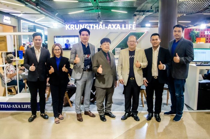 บมจ.กรุงไทย-แอกซ่า ประกันชีวิต ได้รับเกียรติจาก คุณเกรียงไกร เธียรนุกุล ประธานกิตติมศักดิ์ ประธานสภาอุตสาหกรรมแห่งประเทศ (คนที่ 3 จากขวา) และคุณรัฐกร อัสดรธีรยุทธ์ ประธานการจัดงาน Thailand Smart Money (คนกลาง) ร่วมเปิดบูธงาน Thailand Smart Money สุราษฎร์ธานี ครั้งที่ 9 โดยมี คุณภัทรพล อินทร์จันทร์ Senior Regional Agency Management (คนที่ 2 จากขวา) พร้อมตัวแทนให้การต้อนรับและร่วมถ่ายภาพเป็นที่ระลึก ณ เซ็นทรัล สุราษฎร์ธานี