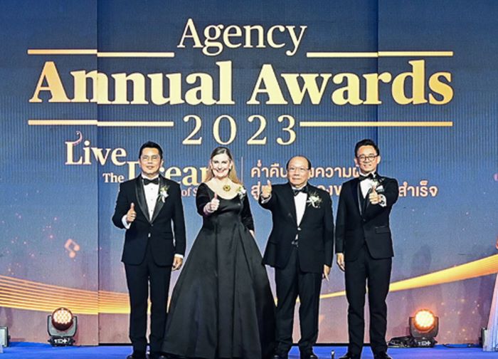 บมจ.กรุงไทย-แอกซ่า ประกันชีวิต จัดงานมอบรางวัลเกียรติยศนักขายประจำปี Krungthai-AXA Agency Annual Award 2023 โดยได้รับเกียรติจาก โดยได้รับเกียรติจาก นายสมชัย บุญนำศิริ ประธานคณะกรรมการ และกรรมการ บมจ.กรุงไทย-แอกซ่า ประกันชีวิต (คนที่ 2 จากขวา) นางแซลลี่ โอฮาร่า ประธานเจ้าหน้าที่บริหาร แอกซ่า ภูมิภาคเอเชียอาคเนย์ และประเทศเกาหลีใต้ (คนที่ 2 จากซ้าย) และนายชัณรงค์ เอื้อสิทธิชัย ประธานเจ้าหน้าที่บริหาร ฝ่ายจัดจำหน่าย บมจ.กรุงไทย-แอกซ่า ประกันชีวิต (คนขวาสุด) ดร.อุกฤษฎ์ ศรีดโรมนต์ ประธานเจ้าหน้าที่บริหาร ฝ่ายตัวแทนและฝ่ายฝึกอบรมและพัฒนาฝ่ายจัดหน่าย พร้อมด้วยผู้บริหารฝ่ายขาย (คนซ้ายสุด) ร่วมเป็นประธานในพิธี และมอบรางวัลแก่ตัวแทนที่สร้างผลงานยอดเยี่ยมตลอดปี 2566 ที่ผ่านมา ณ ห้องบอลรูม 1-3 ศูนย์การประชุมแห่งชาติสิริกิติ์ ซึ่งงานในปีนี้ได้ถูกรังสรรค์ภายใต้ธีม “Live The Dream Symphony of Success” ค่ำคืนแห่งความฝันสู่ท่วงทำนองของความสำเร็จ เพื่อเป็นการเชิดชูเกียรติให้กับสุดยอดตัวแทนของ กรุงไทย-แอกซ่า ประกันชีวิต ทั้งในระดับตัวแทน ผู้จัดการตัวแทน รวมถึงตัวแทนที่ติดคุณวุฒิ AXA Prime คุณวุฒิ MDRT และ GAMA กว่า 800 คน ที่ทุ่มเท มุ่งมั่น และสร้างผลงานยอดยี่ยมในคุณวุฒิแต่ละด้านตลอดปีที่ผ่านมา โดยบริษัทฯ มุ่งมั่นให้การสนับสนุน และยกระดับให้ฝ่ายขายประสบความสำเร็จในอาชีพตั้งแต่เริ่มต้น จนก้าวสู่การเป็นนักขายมืออาชีพ ในปี Year of Double Growth ตามนโยบายของบริษัทฯ ที่ทุกคนจะยึดมั่นจุดมุ่งหมายเดียวกัน ในการมีลูกค้ามาเป็นที่หนึ่ง และอยู่เคียงข้างทุกความเชื่อมั่น ดูแลกันตลอดไป