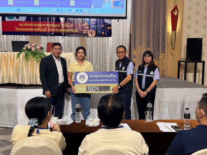 กองทุนประกันชีวิตปฏิบัติการเชิงรุกลงพื้นที่จังหวัดสุพรรณบุรี เพื่อติดตามหาเจ้าของเงินกรมธรรม์ล่วงพ้นอายุความให้มารับผลประโยชน์ตามสิทธิคืนจากกองทุนประกันชีวิต โดยกองทุนฯ ได้จัดงานพบประชาชนเจ้าของกรมธรรม์ฯ ด้วยความร่วมมือสนับสนุนจากสำนักงานคปภ. ภาค 7 (นครปฐม) และสำนักงานคปภ. จังหวัดสุพรรณบุรี ณ โรงแรมสองพันบุรี จังหวัดสุพรรณบุรี เมื่อวันที่ 10 มิถุนายน 2568