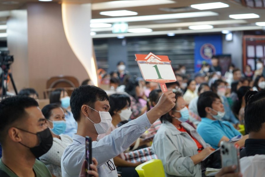 สำหรับผู้ที่สนใจบ้านมือสอง ธอส. ยังสามารถเข้าร่วมประมูลในครั้งต่อไปได้ในงานประมูลบ้านมือสอง ธอส. ออนไลน์ ผ่าน Application : GHB ALL HOME ในวันที่ 12 ธันวาคม 2566 โดยสามารถเข้าชมหรือดูข้อมูลบ้านมือสอง ธอส. เพิ่มเติม ได้ที่ www.ghbhomecenter.com, Mobile Application : GHB ALL HOME หรือสอบถามข้อมูลเพิ่มเติมได้ที่ G H Bank Call Center โทร.0-2645-9000 กด 5 หรือ Facebook Fanpage ธนาคารอาคารสงเคราะห์