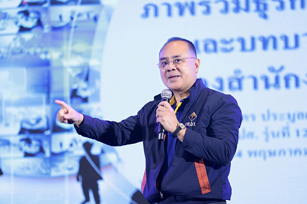 ในโอกาสนี้ นายชูฉัตร ประมูลผล เลขาธิการคณะกรรมการกำกับและส่งเสริมการประกอบธุรกิจประกันภัย (เลขาธิการ คปภ.) เป็นประธานเปิดปฐมนิเทศหลักสูตร วปส. รุ่นที่ 12 ประจำปี 2567 พร้อมบรรยายพิเศษ โดยมีใจความสำคัญตอนหนึ่งว่า ธุรกิจประกันภัยมีความมั่นคงสูงและมีอัตราการเจริญเติบโตอย่างต่อเนื่อง โดยเห็นได้จากธุรกิจประกันภัยไทยในปี 2567 มีแนวโน้มเติบโตจากปัจจัยการฟื้นตัวของกิจกรรมทางเศรษฐกิจ พฤติกรรมผู้บริโภคที่ให้ความสำคัญกับการบริหารความเสี่ยงด้านสุขภาพ การฟื้นตัวอย่างต่อเนื่องของภาคการท่องเที่ยว การลงทุนของรัฐวิสาหกิจในโครงการลงทุนโครงสร้างพื้นฐานสำคัญ และการลงทุนภาคเอกชนที่เพิ่มสูงขึ้น การเข้าสู่สังคมสูงวัย รวมถึงภาครัฐให้การสนับสนุนเรื่องมาตรการลดหย่อนภาษีของประกันชีวิต การเสนอขายผลิตภัณฑ์ประกันภัยรูปแบบใหม่ และการนำเทคโนโลยีหรือ AI มาใช้ในการรับประกันภัย ส่วนความท้าทายของสำนักงาน คปภ. และธุรกิจประกันภัยไทย เช่น สังคมผู้สูงอายุ ค่าใช้จ่ายด้านสุขภาพ ความก้าวหน้าทางเทคโนโลยี การปรับปรุงกฎหมายที่เกี่ยวข้อง การพัฒนาอย่างยั่งยืน (ESG) และการเข้าถึงลูกค้า โดยสำนักงาน คปภ. มีนโยบายในการขับเคลื่อนให้ธุรกิจประกันภัยมีความยืดหยุ่น คำนึงถึงความยั่งยืน ปรับตัวได้เท่าทันความเสี่ยงและสภาพแวดล้อมที่เปลี่ยนแปลง ประชาชนและภาคเอกชน เข้าใจ เข้าถึง และเชื่อมั่นระบบประกันภัย มีมาตรฐานและโครงสร้างพื้นฐานที่เพียงพอเหมาะสม สามารถพัฒนาผลิตภัณฑ์ประกันภัยที่ยั่งยืนหลากหลายและสะท้อนความเสี่ยงเฉพาะราย เติบโตอย่างยั่งยืนด้วยระบบนิเวศด้านเทคโนโลยีดิจิทัล ฐานข้อมูล และโครงสร้างพื้นฐานที่เหมาะสม การพัฒนาสู่องค์กรยั่งยืนที่คล่องตัว ทันสมัย และมีเป้าหมายร่วมกันให้สำนักงาน คปภ. เป็นองค์กรแห่งความภาคภูมิใจของคนไทย