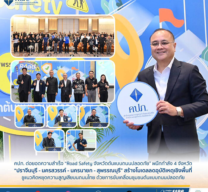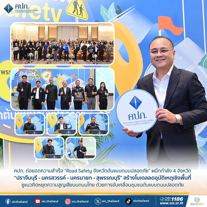 “จากผลลัพธ์ดังกล่าว สำนักงาน คปภ. ได้ดำเนินการต่อยอดขยายผลโครงการในปี 2569 สู่ 4 จังหวัด ได้แก่ ปราจีนบุรี นครสวรรค์ นครนายก และสุพรรณบุรี ซึ่งแต่ละจังหวัดมีบริบทพื้นที่ที่แตกต่างกัน ทั้งพื้นที่อุตสาหกรรม ย่านพาณิชยกรรม เส้นทางเชื่อมโยงระหว่างเมือง และพื้นที่เกษตรกรรม ความหลากหลายดังกล่าวจะช่วยให้คณะผู้วิจัยจากมูลนิธิสถาบันวิจัยเพื่อการพัฒนาประเทศไทย (TDRI) สามารถพัฒนาชุมชนต้นแบบถนนปลอดภัยที่ตอบโจทย์ปัญหาได้ตรงจุด และยกระดับสู่โมเดลเชิงนโยบายในระดับประเทศต่อไป ทั้งนี้ การดำเนินโครงการจะมุ่งเชื่อมโยงเข้ากับแผนพัฒนาจังหวัด แผนป้องกันและลดอุบัติเหตุ ทางถนน รวมถึงกลไกคณะกรรมการในระดับพื้นที่ที่มีอยู่เดิม เพื่อให้การขับเคลื่อนเป็นไปอย่างบูรณาการ ลดความซ้ำซ้อน และเพิ่มประสิทธิภาพการบริหารจัดการเชิงระบบในระดับจังหวัดและชุมชน” เลขาธิการ คปภ. กล่าวในตอนท้าย