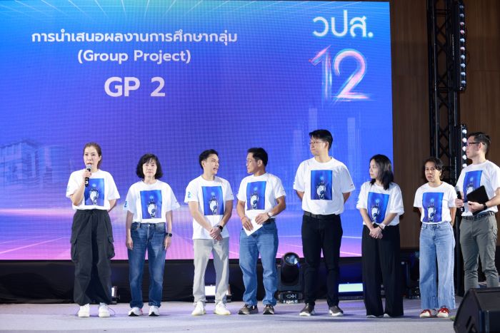 ทั้งนี้ การจัดทำรายงานการศึกษากลุ่ม (Group Project : GP) เป็นกิจกรรมที่หลักสูตรฯ ให้ความสำคัญและกำหนดให้นักศึกษาทุกคนเข้าร่วม เพื่อช่วยกันระดมความคิดและแบ่งปันประสบการณ์ในแง่มุมต่าง ๆ มานำเสนอในรูปแบบรายงานวิชาการ โดยในการปิดหลักสูตร วปส. รุ่นที่ 12 ครั้งนี้ ได้กำหนดให้ผู้เข้ารับการอบรมนำเสนอรายงานการศึกษากลุ่ม GP และตอบข้อซักถามแก่คณะอาจารย์ที่ปรึกษา ประกอบด้วยอาจารย์ผู้ทรงคุณวุฒิจากมหาวิทยาลัยต่าง ๆ และผู้บริหารระดับสูงของสำนักงาน คปภ.