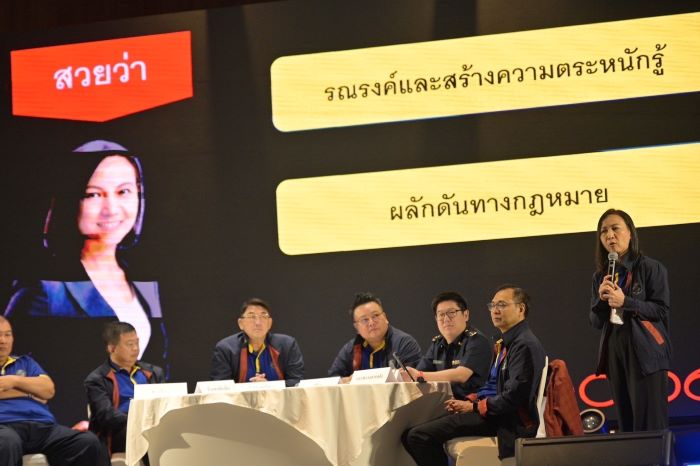 และกลุ่มที่ 6 หัวข้อ “การสร้างความตระหนักในการพัฒนาความร่วมมือในธุรกิจประกันภัยระหว่างภาครัฐและภาคเอกชนเพื่อลดช่องว่างความคุ้มครองจากภาวะสูงอายุเพื่อการพัฒนาสังคมที่ยั่งยืน” ประเทศไทยกำลังเผชิญกับปัญหาสังคมสูงอายุที่ส่งผลกระทบทั้งด้านเศรษฐกิจและสังคม โดยเฉพาะการจัดการสุขภาพและค่าใช้จ่ายในการยังชีพของผู้สูงอายุ การศึกษาพบว่ามีช่องว่างความคุ้มครองด้านประกันภัยที่สำคัญ เช่น สวัสดิการจากรัฐไม่เพียงพอ ขาดความรู้และความตระหนักในการวางแผนก่อนเกษียณ และความไม่พอใจในความคุ้มครองของประกันภัยที่มีอยู่ ดังนั้น ทางกลุ่มจึงให้ความสำคัญกับการพัฒนาความร่วมมือระหว่างภาครัฐและเอกชนในการแก้ไขปัญหาสังคมสูงอายุ และการสร้างความตระหนักรู้ให้ประชาชนเห็นความสำคัญของการประกันภัยเพื่อการพัฒนาสังคมที่ยั่งยืน