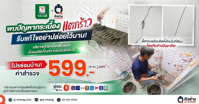 ทั้งนี้ เพื่อแบ่งเบาภาระค่าใช้จ่ายในการซ่อมแซม จระเข้และ Q-CHANG ได้ร่วมกันมอบส่วนลดพิเศษ 2,000 บาท สำหรับผู้ที่จองบริการผ่านแอปพลิเคชัน Q-CHANG เมื่อใช้ผลิตภัณฑ์ของจระเข้ในการซ่อมแซมภายใน 30 เมษายน 2568 ผู้ที่ต้องการบริการซ่อมแซมสามารถเลือกจองได้อย่างต่อเนื่องผ่านแอปฯ Q-CHANG ซึ่งมีบริการให้เลือกกว่า 120 รายการ อาทิ บริการซ่อมฝ้าเพดาน ที่ได้รับผลกระทบจากการสั่นสะเทือน, ซ่อมกระเบื้องพื้นหรือผนังที่แตกร้าว, งานปูน รอยร้าว ผนังแตกลายเส้น, เคลือบรอยรั่ว และกันน้ำซึมเข้าสู่โครงสร้าง ไปจนถึงงานทำความสะอาดที่พักอาศัย ความร่วมมือกับ Q-CHANG ในครั้งนี้ยังครอบคลุมการจับคู่กับ “ช่างที่ผ่านการอบรมและรับรองจากจระเข้” สำหรับงานปูกระเบื้องและยาแนว เพื่อมั่นใจว่าช่างมีความรู้เฉพาะทางและเข้าใจวิธีใช้วัสดุได้อย่างถูกต้อง