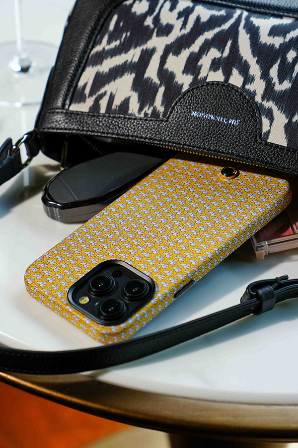 เคส iPhone ผ้าไหมเหล่านี้ออกแบบมาสำหรับ iPhone 15 Pro และ 15 Pro Max (รองรับ Magsafe และกล้อง 3 ตัว) ในลวดลายสุดประณีต 2 รูปแบบ อินสไปร์จากเสน่ห์ความสง่างามของช้าง โดยลวดลาย ‘Baby Elephant’ ครีเอตขึ้นในพื้นหลังสีน้ำเงินคลาสสิก จัดวางภาพเงาของช้างในอิริยาบถต่าง ๆ เพื่อแสดงถึงความน่ารักของช้าง ส่วนแพทเทิร์น ‘Raised Trunk Elephant’ รังสรรค์บนผ้าไหมสีเหลืองสดใส นำรูปทรงของช้างมาจัดวางซ้ำไปมาจนเกิดความรู้สึกราวกับว่าช้างเหล่านี้กำลังเต้นระบำ ทั้งสองลวดลายต่างถ่ายทอดความงดงามของช้างและช่วยป้องกัน iPhone ได้อย่างมีสไตล์ ตัวเคสด้านในบุด้วยผ้าไมโครไฟเบอร์สีเทาอ่อนเพื่อเสริมประสิทธิภาพการป้องกัน
