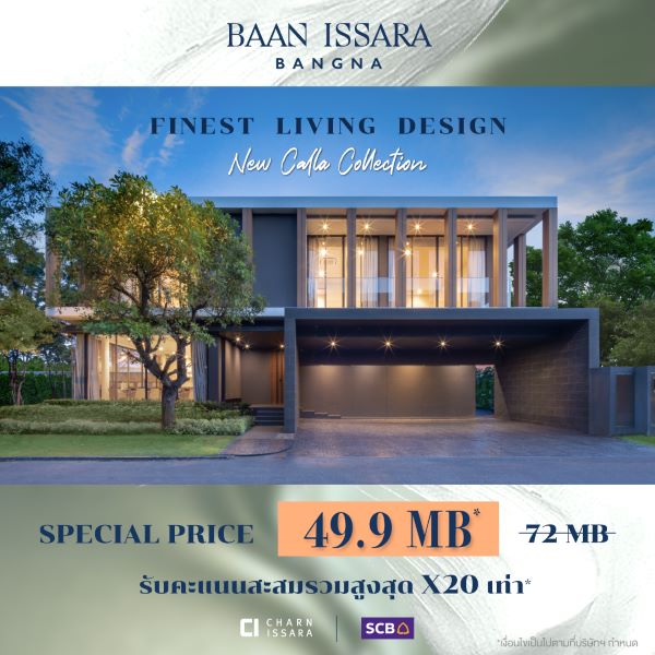 ด้านโครงการบ้านอิสสระ บางนา จัดโปรโมชั่น Finest Living Design-New Calla Collection ราคาพิเศษสำหรับบ้าน Type C (Calla) ด้วยราคาพิเศษเริ่ม 49.9 ล้านบาท รับคะแนนสะสมเพิ่ม X20 เมื่อมีการใช้จ่ายการจองผ่านบัตรเครดิต SCB Private Bank และ First และรับส่วนลดเพิ่มสูงสุด 500,000 บาท เมื่อลงทะเบียนออนไลน์