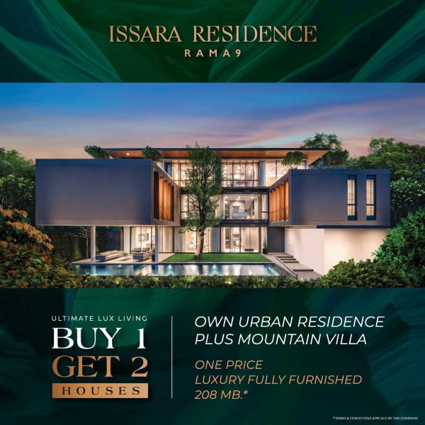 โดยโครงการอิสสระ เรสซิเดนซ์ พระราม 9 จัดโปรโมชั่น Ultimate Lux Living Buy 1 Get 2 Houses เมื่อซื้อโครงการอิสสระ เรสซิเดนซ์ พระราม 9 พร้อมตกแต่ง รับฟรีทันทีวิลล่าตากอากาศสุดหรูจาก โครงการบ้านสีตวัน ปากช่องเขาใหญ่ มูลค่า 29.9 ล้านบาท ฟรีทุกค่าใช้จ่ายวันโอนทั้ง โครงการ พร้อมรับส่วนลดเพิ่มสูงสุด 500,000 บาท เมื่อลงทะเบียนออนไลน์ ให้คุณสัมผัสประสบการณ์สุด Exclusive ที่เชื่อมต่อชีวิต 2 ทำเลด้วยไลฟ์สไตล์ที่เหนือระดับ ตอบโจทย์ทุกจังหวะชีวิตลงตัวอย่างสมบูรณ์แบบ