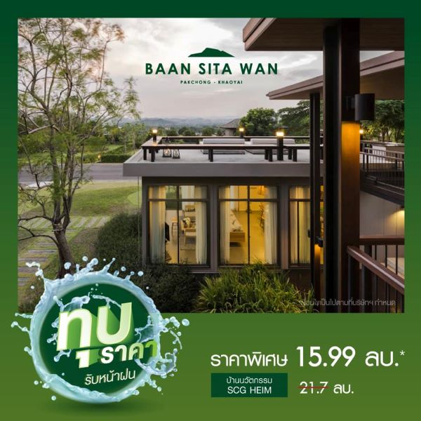ขณะที่บ้านโซนต่างจังหวัดอย่าง โครงการบ้าน สีตวัน ปากช่องเขาใหญ่ จัดโปรโมชั่น ทุบราคา รับหน้าฝน แปลงพิเศษ 15.99 ล้านบาท จากราคา 21.7 ล้านบาท สำหรับแปลงอื่นๆ มอบส่วนลดสูงสุด ล้านบาท ฟรีทุกค่าใช้จ่ายวันโอน