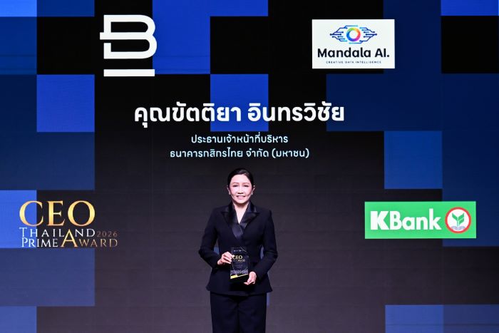 นางสาวขัตติยา อินทรวิชัย ประธานเจ้าหน้าที่บริหาร ธนาคารกสิกรไทย รับรางวัล 2026 CEO Thailand Prime Award ภายในงาน 2026 Thailand’s Most Admired Brand จัดโดย BrandAge นิตยสารและสื่อออนไลน์ธุรกิจการตลาดชั้นนำของไทย ร่วมกับ บริษัท โอเชี่ยน สกาย เน็ตเวิร์ค จํากัด จัดทำผลสํารวจความโดดเด่นของผู้บริหารสูงสุดขององค์กรที่ได้สร้างคุณค่าที่ก่อให้เกิดผลกระทบในด้านเศรษฐกิจ แบรนด์ และการรับรู้ของผู้บริโภค โดยใช้เครื่องมือ Mandala AI พร้อมกับการพิจารณาจากกรรมการผู้ทรงคุณวุฒิ