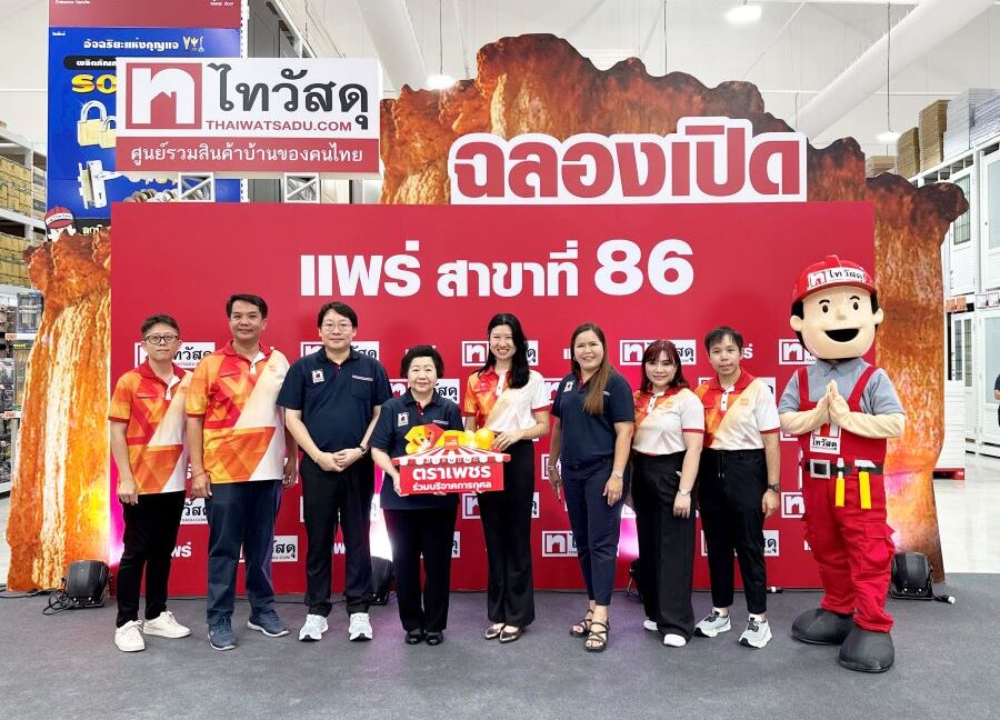 ดร.พิชญานันท์ ล้อวรลักษณ์ ผู้ช่วยประธานเจ้าหน้าที่บริหารสายการขายและการตลาด บริษัท ผลิตภัณฑ์ตราเพชร จำกัด (มหาชน) หรือ DRT ร่วมแสดงความยินดีกับ นางปาริชาติ ยามวินิจ ที่ปรึกษาประธานเจ้าหน้าที่บริหาร บริษัท ซีอาร์ซี ไทวัสดุ จำกัด ในเครือเซ็นทรัล รีเทล ผู้บริหารศูนย์รวมสินค้าและวัสดุอุปกรณ์ก่อสร้าง สินค้าตกแต่งบ้านครบวงจร ภายใต้ชื่อ ‘ไทวัสดุ’ เนื่องในโอกาสเปิดให้บริการไทวัสดุ สาขาแพร่ ซึ่งเป็นสาขาที่ 86 เพื่อตอบสนองกำลังซื้อและความต้องการใช้สินค้าวัสดุก่อสร้างในจังหวัดแพร่และพื้นที่ภาคเหนือตอนบน รองรับงานก่อสร้างและตกแต่งซ่อมแซม
