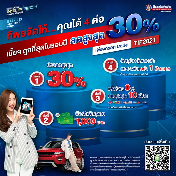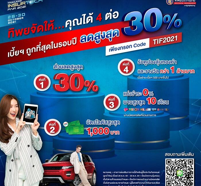 สำหรับผู้ที่สนใจสามารถเข้าซื้อประกันภัยในงานได้ที่ www.tif2021.com หรือ www.tipinsure.com ตั้งแต่ วันที่ 26 – 30 ตุลาคม 2564