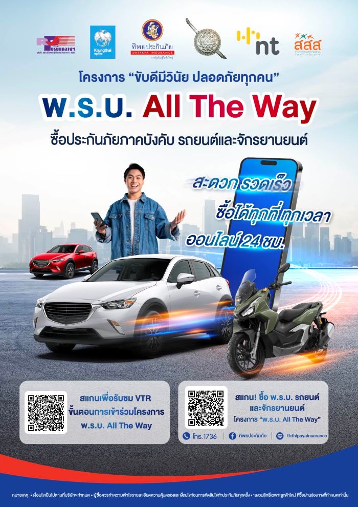 อำนวยความสะดวกให้ประชาชนซื้อประกันภัยภาคบังคับ (พ.ร.บ.) ได้ง่าย รวดเร็ว ทุกที่ทุกเวลา ผ่านช่องทาง Line :@Dhipayainsurance , เว็บไซต์ : www.tipinsure.com ช่วยให้ผู้ใช้รถปฏิบัติตามกฎหมาย และมั่นใจทุกครั้งที่เดินทาง