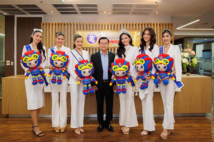 ดร.สมพร สืบถวิลกุล ประธานเจ้าหน้าที่บริหาร บมจ.ทิพย กรุ๊ป โฮลดิ้งส์ และ กรรมการผู้จัดการใหญ่ บมจ. ทิพยประกันภัย ให้การต้อนรับน้องมิ้ว สุจารี กาญจนกฤต นางสาวถิ่นไทยงาม ประจำปี 2565 และรองทั้ง 4 ที่นำทีมเข้าแสดงความขอบคุณ ทิพยประกันภัยที่ให้การสนับสนุนการประกวด