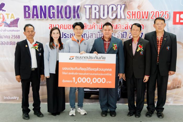 บริษัท ธนชาตประกันภัย จำกัด (มหาชน) โดย นายอาทิตย์ แชประเสริฐ Head – Corporate Finance and Dealer Marketing ร่วมมอบกระเช้าแสดงความยินดี และมอบกรมธรรม์ประกันอุบัติเหตุส่วนบุคคล ทุนประกันภัย 1,000,000 บาท ให้กับ ดร.ทองอยู่ คงขันธ์ ประธานสหพันธ์การขนส่งทางบกแห่งประเทศไทย และตัวแทนนายกสมาคมขนส่งสินค้านำเข้าและส่งออก (Import- Export Transport Association หรือ IM-EX TA) ในโอกาสการจัดประชุมใหญ่สามัญประจำปี 2567 และความสำเร็จของจัดงาน Bangkok Truck Show 2025 ณ PAT ARENA การท่าเรือแห่งประเทศไทย ซึ่งธนชาตประกันภัย ได้ร่วมออกบูธภายในงานนี้ด้วย เพื่อประชาสัมพันธ์ผลิตภัณฑ์ประกันภัยรถบรรทุก พร้อมนำเสนอบริการและความคุ้มครองที่ได้คุณภาพและมาตรฐานสอดคล้องกับความต้องการของผู้ประกอบการภาคธุรกิจการขนส่งด้วยรถบรรทุกของไทย