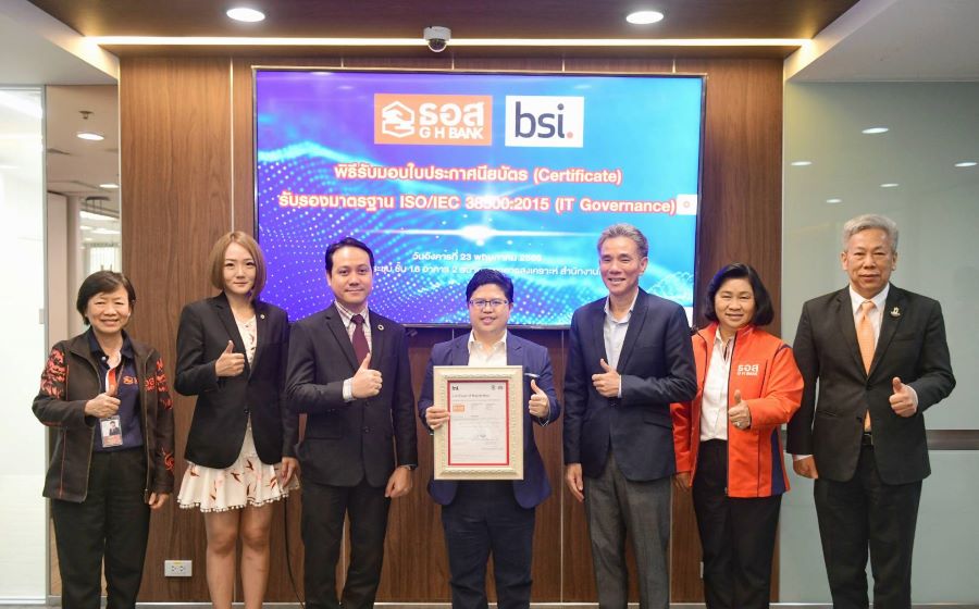 ดร.กริชผกา บุญเฟื่อง ประธานกรรมการกำหนดกลยุทธ์และนโยบายทางด้าน IT และนวัตกรรม ธนาคารอาคารสงเคราะห์ (ธอส.) เป็นผู้แทนธนาคารรับมอบใบประกาศนียบัตรรับรองมาตรฐาน ISO/IEC 38500:2015 ด้านการบริหารจัดการด้านธรรมาภิบาลเทคโนโลยีสารสนเทศในองค์กร (IT Governance) จากบริษัท บีเอสไอ กรุ๊ป (ประเทศไทย) จำกัด โดยมีนายบุคลากร ใจดี ผู้จัดการทั่วไปฝ่ายขายและการตลาด เป็นผู้มอบประกาศนียบัตรในครั้งนี้ โดยมีนายกฤษณ์ เสสะเวช กรรมการธนาคาร และรักษาการกรรมการผู้จัดการ ธอส. ร่วมเป็นสักขีพยานซึ่งมาตรฐาน ISO/IEC 38500:2015 (IT Governance) ที่ ธอส. ได้รับนั้น ถือเป็นการการันตีว่า ธอส. มี IT Governance ที่เป็นไปตามมาตรฐานสากล และสอดคล้องตามกระบวนการปฏิบัติงานและการจัดการ (Core Business Enablers) ของรัฐวิสาหกิจ ที่มุ่งเน้นในการยกระดับการบริหารจัดการ โดยการบูรณาการเทคโนโลยีสารสนเทศอย่างเป็นระบบ มีประสิทธิภาพสูงสุด และมีความโปร่งใส สามารถตรวจสอบได้ รวมทั้งยังตอบสนองและรองรับความต้องการด้านเทคโนโลยีสารสนเทศตามสภาพแวดล้อมทางธุรกิจที่เปลี่ยนแปลงไป เพื่อเพิ่มขีดความสามารถในการแข่งขันของธนาคารได้อย่างยั่งยืน ทั้งนี้ พิธีรับมอบประกาศนียบัตรดังกล่าว จัดขึ้น ณ ธนาคารอาคารสงเคราะห์ สำนักงานใหญ่