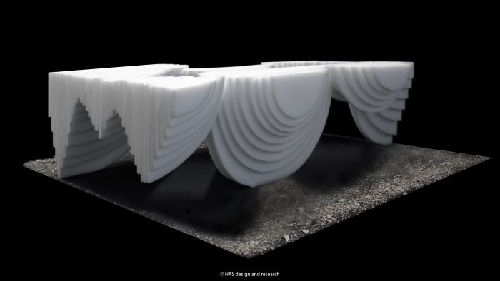 ถ้ำอะลูมิเนียม S-ONE (S-ONE Aluminum Grotto) ออกแบบโดย HAS design and research เป็นการนำอะลูมิเนียมมาสร้างพื้นที่ที่สะท้อนลักษณะทางธรรมชาติในรูปแบบใหม่ ให้ได้สัมผัสถึงการอยู่ร่วมกันระหว่างผลผลิตทางอุตสาหกรรมกับการแสวงหาพื้นที่ในธรรมชาติของผู้คนในปัจจุบัน เรียกว่าเป็นปรากฎการณ์บูรณาการรูปแบบใหม่ผ่านงานสถาปัตยกรรม