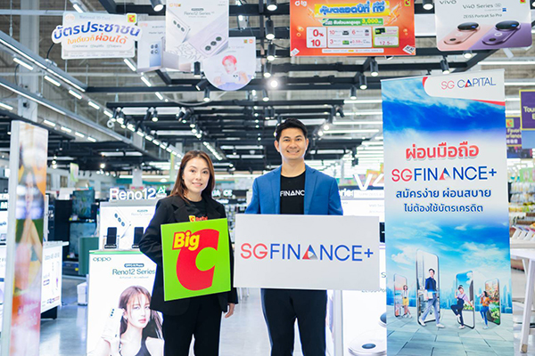 นางสาวอรนิดา วิมลวัฒนาภัณฑ์ รักษาการรองประธานเจ้าหน้าที่สายงานจัดซื้อสินค้าและบริหารสินค้า บริษัท บิ๊กซี ซูเปอร์เซ็นเตอร์ จำกัด (มหาชน) ร่วมกับ นายอโณทัย ศรีเตียเพ็ชร กรรมการผู้จัดการ บริษัท เอสจี แคปปิตอล จำกัด (มหาชน) ผนึกกำลัง 4 ค่ายมือถือ จากแบรนด์ชั้นนำ ได้แก่ OPPO, VIVO, XIAOMI และ REALME เปิดให้บริการสินเชื่อใหม่ “SG Finance +” มอบสิทธิพิเศษสำหรับลูกค้าที่ต้องการเป็นเจ้าของสมาร์ทโฟนได้ง่ายขึ้น สามารถสมัครใช้บริการง่าย ๆ เพียงมีบัตรประชาชน ดำเนินการในรูปแบบสัญญาเช่าซื้อ (Hire Purchase) พร้อมกับการนำเทคโนโลยีมาเสริมทัพการให้บริการที่รวดเร็วขึ้น รู้ผลไว ภายใน 3 นาที มีอัตราดอกเบี้ยแบบคงที่เริ่มต้นที่ 1.25% ต่อเดือน ด้วยระยะเวลาผ่อนมือถือไม่เกิน 24 เดือน สำหรับลูกค้าที่สนใจสามารถ ใช้บริการสินเชื่อที่หน้าสาขา บิ๊กซี ซูเปอร์เซ็นเตอร์กว่า 88 สาขาทั่วประเทศ