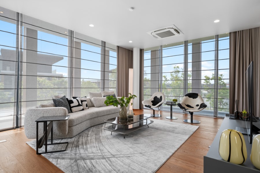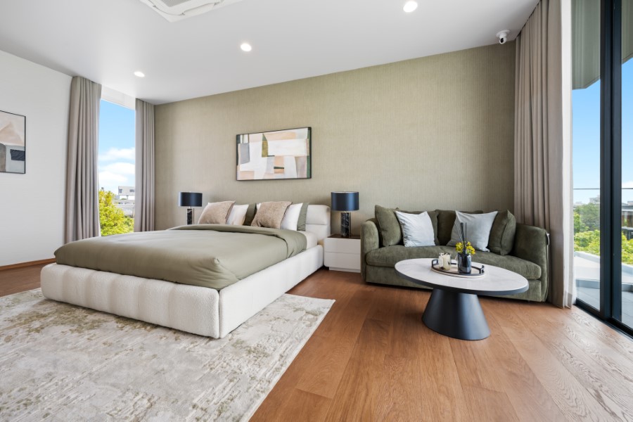 สำหรับบ้านหลังนี้เป็นแบบบ้าน Abelia plus (A+) สูง 3 ชั้น บนที่ดินขนาด 158.40 ตร.ว. พื้นที่ใช้สอย 750 ตร.ม. จำนวน 5 ห้องนอน 7 ห้องน้ำ 2 ห้องแม่บ้าน พร้อมลิฟท์โดยสาร และสระว่ายน้ำส่วนตัว จอดรถได้ 4-5 คัน มีการตกแต่งในแบบ Luxury Standard Treatment มีความเรียบง่าย ไม่ฟุ่มเฟือย เน้นให้เห็นถึงพื้นฐานของบ้านที่ MODERN CLEAN-CUT อย่างลงตัว แนวคิด Quiet Luxury Practice คล้ายกับ Minimalist ตรงที่น้อยแต่มาก แต่แตกต่างกันตรงที่ Quiet Luxury ใช้การคัดสรรสิ่งที่มีอยู่แล้วให้เหมาะสมที่สุด ไม่ต้องเสียเงินไปประดิษฐ์ Tailor made ให้เกิดความเรียบง่าย ไม่เน้นแสดงออกด้วยโลโก้แบรนด์ดัง แต่เน้นเรื่องของคุณภาพมากกว่าแบรนด์เนมราคาแพง การแต่งบ้านเน้น CORE ESSENCE สาระสำคัญของการใช้ชีวิตจริงในตัวบ้าน ไม่ประดิษฐ์ประดอยเกินไป และแสดงออกถึงความใส่ใจธรรมชาติและสิ่งแวดล้อมของผู้อยู่อาศัย