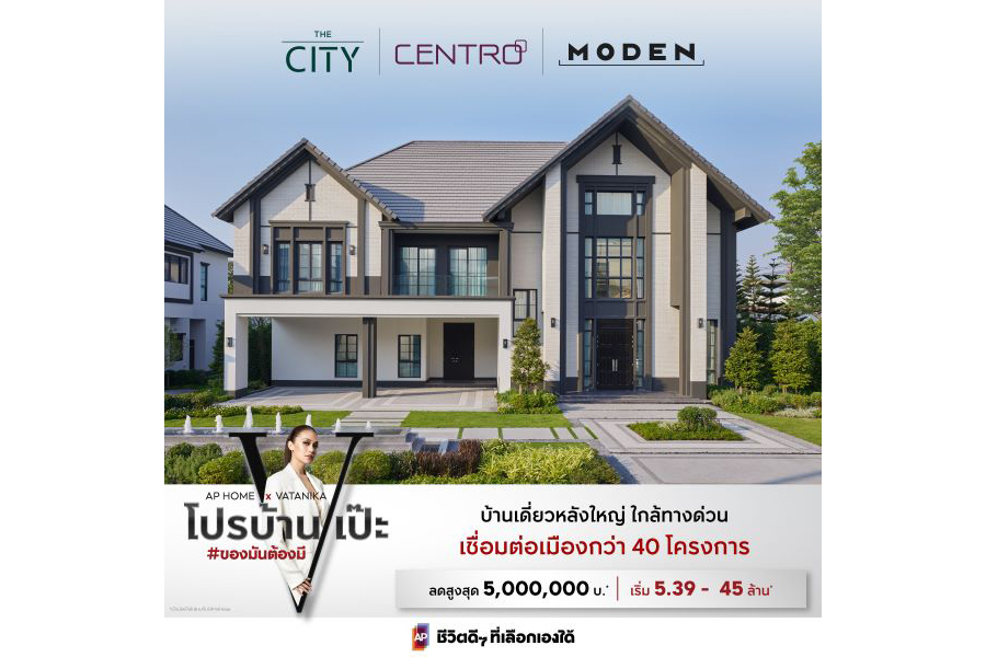 เอพี ไทยแลนด์ ปั้นแคมเปญใหญ่ AP HOME x VATANIKA ย้ำต้นแบบบ้านที่เข้าใจทุกชีวิตของครอบครัวเมือง ตอกย้ำแนวคิดในการพัฒนาโครงการบ้านเดี่ยวเอพี ที่ใส่ใจและลงลึกในทุกรายละเอียด ผ่านจุดต่างที่นำมาซึ่งความสำเร็จของแบรนด์ THE CITY, CENTRO และ MODEN มอบข้อเสนอพิเศษ “โปรบ้านเป๊ะ” #ของมันต้องมี บ้านยูนิตสวย จัดเต็มรับโปรฯ ที่ใช่ แพ็กเกจแต่งบ้านเป๊ะจากแบรนด์ดัง ส่วนลดรวมสูงสุด 5 ล้านบาท ราคาพิเศษเริ่ม 39 – 45 ล้านบาท พบกับแคมเปญ AP HOME x VATANIKA “โปรบ้านเป๊ะ” สำหรับลูกค้าที่จองและโอน บ้านเดี่ยวเอพี THE CITY, CENTRO และ MODEN รวมกว่า 40 โครงการ ครอบคลุมทุกทำเลทั่วกรุงเทพฯ เริ่มวันนี้ – 30 กันยายนนี้เท่านั้น ข้อมูลเพิ่มเติม https://apth.ly/aphome