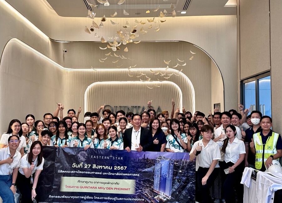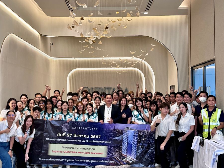 บริษัท อีสเทอร์น สตาร์ เรียล เอสเตท จำกัด (มหาชน) หรือ ESTAR นำโดยหัวเรือใหญ่ พี่แจ้-ไพโรจน์ วัฒนวโรดม กรรมการผู้จัดการ บริษัทฯ ในฐานะนิสิตเก่าดีเด่น แห่งคณะวิศวกรรมศาสตร์ มหาวิทยาลัยเกษตรศาสตร์ เปิดบ้านต้อนรับนิสิต คณะสถาปัตยกรรมศาสตร์ มหาวิทยาลัยเกษตรศาสตร์ ในการเยี่ยมชมโครงการ QUINTARA MHy’DEN PHO NIMIT By EASTERN STAR x ARCH KU พร้อมยังเป็นวิทยากรในการบรรยาย ภายใต้กิจกรรมพัฒนาคุณภาพผู้เรียนโครงการเรียนรู้ในสถานประกอบการ กิจกรรมนี้จัดขึ้นเพื่อให้นิสิตได้เรียนรู้จากสถานที่จริง และได้รับความรู้จากประสบการณ์ตรงของผู้ประกอบการอสังหาฯ ระดับมืออาชีพ เป็นการแลกเปลี่ยนประสบการณ์เพื่อส่งเสริมศักยภาพคนรุ่นใหม่ ให้สามารถนำความรู้ที่ได้ไปปรับใช้กับเทรนด์ยุคใหม่ได้อย่างยั่งยืน กิจกรรมดังกล่าวได้จัดขึ้นเมื่อเร็วๆ นี้