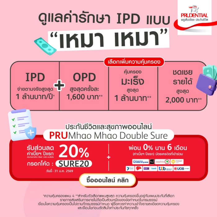 ดังนั้น ผู้บริโภคยังสามารถเชื่อมั่นได้ว่าประกันสุขภาพเหมาจ่ายจาก พรูเด็นเชียลฯ ยังคงเดินหน้าและพร้อมดูแลชีวิตคนไทยทุกคนอย่างเต็มรูปแบบ โดยผู้สนใจสามารถติดตามรายละเอียดเพิ่มเติมได้ที่ Call Center โทร. 1621, LINE Official Account @PrudentialThailand หรือ www.prudential.co.th