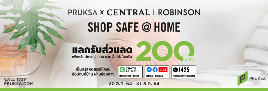พฤกษา ผนึกกำลัง ห้างเซ็นทรัลและโรบินสัน ตอบรับไลฟ์สไตล์ดิรัปชั่น สนับสนุนการช้อปแบบปลอดภัยที่บ้าน จัดแคมเปญ Central / Robinson at Pruksa” ภายใต้คอนเซปต์ “Bring you the best – ครบทุกสิ่งที่ดีที่สุด” มอบส่วนลดพิเศษสำหรับ “Pruksa Member” โดยเฉพาะ เมื่อช้อปกับเซ็นทรัลและโรบินสัน ผ่านช่องทาง Central/Robinson Chat & Shop แชตและช้อปผ่านไลน์บริการ Central/Robinson Call & Shop และ Personal Shopper On Demand โทร.1425 โทรหรือวิดีโอคอลกับผู้ช่วยช้อปปิ้ง รวมถึงช้อปผ่าน Central App ที่มีสินค้าครบครันเสมือนยกห้างฯ มาไว้บนมือถือ ครบ 2,000 บาท รับส่วนลด 200 บาท และรับสิทธิจัดส่งฟรีเพิ่มเติม เมื่อซื้อสินค้าครบ 699 บาท