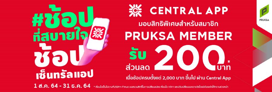 สำหรับแคมเปญ Central / Robinson at Pruksa” ภายใต้คอนเซปต์ Bring you the best – ครบทุกสิ่งที่ดีที่สุด” มอบสิทธิพิเศษสำหรับสมาชิก Pruksa Member โดยเฉพาะ โดยสมาชิกจะได้รับส่วนลด 200 บาทเมื่อช้อปครบ 2,000 บาท ผ่านช่องทาง Central/Robinson Chat & Shop แชตและช้อปผ่านไลน์บริการ Central/Robinson Call & Shop และ Personal Shopper On Demand โทร.1425 โทรหรือวิดีโอคอลกับผู้ช่วยช้อปปิ้งรวมถึงช้อปผ่าน Central App พร้อมรับบริการจัดส่งฟรี เมื่อซื้อสินค้าครบ 699 บาท พร้อมกันนี้สมาชิก Pruksa Member จะได้รับบริการที่หลากหลายได้แก่ ผู้ช่วยช้อปที่แนะนำให้คำปรึกษาสินค้าต่างๆ ตลอดจนบริการเสริมอื่น ๆ เช่น บริการจัดส่งสินค้า บริการห่อของขวัญ พร้อมแนบการ์ดอวยพร ฯลฯ ที่จะช่วยยกระดับคุณภาพชีวิตของสมาชิกให้มีความสะดวกสบายยิ่งขึ้น