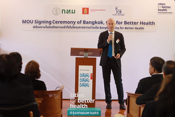 นายจิฮาน เซอร์ดาร์ คิซิลจิก ผู้จัดการทั่วไปของบริษัท โนโว นอร์ดิสค์ ฟาร์มา (ประเทศไทย) จำกัด เน้นย้ำว่า “ที่โนโว นอร์ดิสค์ เราเชื่อในการใช้พลังของความร่วมมือระหว่างภาครัฐและเอกชน (Public-private partnership) เพื่อขับเคลื่อนการเปลี่ยนแปลงในทางบวกเพื่อการดูแลสุขภาพ โครงการ Bangkok, City for Better Health เป็นเครื่องพิสูจน์ถึงความมุ่งมั่นของโนโว นอร์ดิสค์ในการสร้างผลลัพธ์ด้านสุขภาวะที่ดีและส่งเสริมแนวปฏิบัติที่ยั่งยืนในสภาพแวดล้อมในเมือง ซึ่งโรคหัวใจ หลอดเลือด และโรคทางเมแทบอลิก รวมถึงโรคอ้วน กำลังส่งผลกระทบต่อประชากรในเมืองอย่างมีนัยสำคัญ”