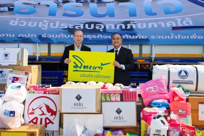 พิธีส่งมอบจัดขึ้นเมื่อวันที่ 3 ธันวาคม 2568 ณ ลานอเนกประสงค์ สำนักงาน คปภ. ถนนรัชดาภิเษก โดยมี นายชูฉัตร ประมูลผล เลขาธิการ คปภ. เป็นผู้แทนรับมอบ ก่อนนำไปส่งต่อยังพื้นที่ที่ได้รับผลกระทบ เพื่อบรรเทาความเดือดร้อนในเบื้องต้น