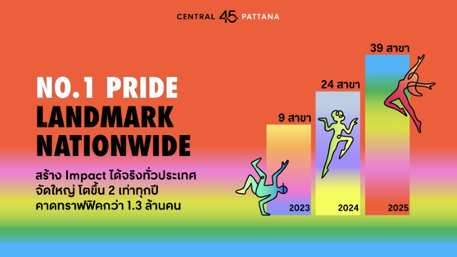 บริษัท เซ็นทรัลพัฒนา จำกัด (มหาชน) ผู้นำอสังหาริมทรัพย์ของไทยและผู้บริหารศูนย์การค้าเซ็นทรัลทั่วประเทศ ย้ำบทบาท The Pioneer of Equality ผู้ริเริ่มงานฉลองเดือนแห่งความภาคภูมิใจ Pride month ต่อเนื่องปีที่ 6 ประกาศความยิ่งใหญ่เปิดพื้นที่ศูนย์การค้าเซ็นทรัลทั่วประเทศ เป็นพื้นที่การแสดงออกความเป็นตัวตนอย่างเท่าเทียม ภายในงาน Thailand’s Pride Celebration 2025 “Pride For All” ชูศักยภาพประเทศไทยสู่การเป็นเจ้าภาพ World Pride 2030 เดินหน้าปลุกภาคเศรษฐกิจ-ท่องเที่ยว ไตรมาส 2 และหนุนอุตสาหกรรมบันเทิง Boys Love-Girls Love ของไทยที่มีอิทธิพลระดับโลก