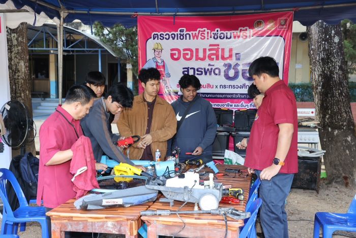 รมว.คลัง ตรวจเยี่ยมโครงการ “ออมสินสารพัดซ่อม” จัดงบกว่า 10 ลบ. ช่วยฟื้นฟูหลังน้ำลด ระดมครู-นักศึกษาช่าง บริการซ่อมฟรี! มอเตอร์ไซค์ เครื่องใช้ครัวเรือน