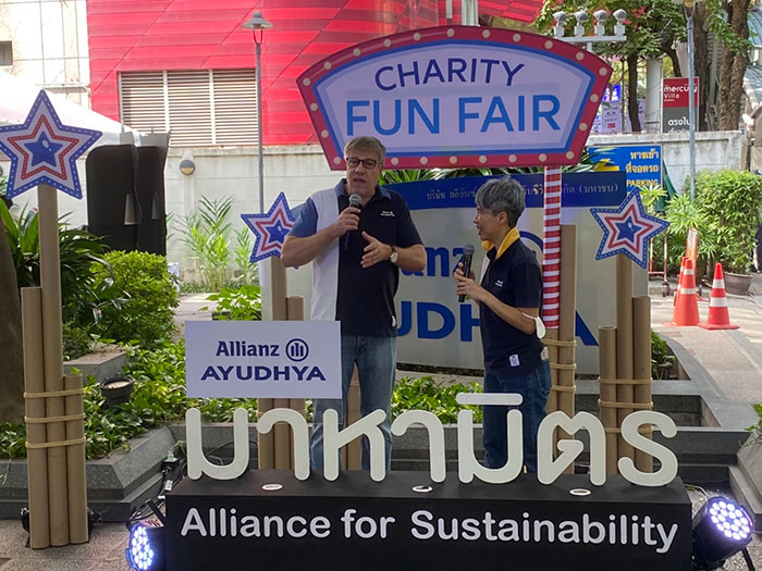 นายโทมัส วิลสัน ประธานเจ้าหน้าที่บริหารและกรรมการผู้จัดการใหญ่ บมจ. อลิอันซ์ อยุธยา ประกันชีวิต กล่าวว่า “อลิอันซ์ อยุธยา มีความตั้งใจในการสร้างสรรค์สังคม ด้วยแนวคิดหลัก เราใส่ใจในวันพรุ่งนี้ (We care for tomorrow) ผ่านการดำเนินธุรกิจและการจัดกิจกรรมต่าง ๆ โดย งาน Charity Fun Fair ที่จัดขึ้น เป็นอีกหนึ่งกิจกรรมดีดี ที่ อลิอันซ์ อยุธยา ตั้งใจให้เป็นเวทีในการส่งต่อความสุข ส่งท้ายปี โดยกิจกรรมภายในงานเป็นกิจกรรมที่เปิดให้คนทั่วไปสามารถเข้ามาร่วมได้ โดยมีทั้งเกม ร้านค้าจากพนักงานและตัวแทน รวมถึงกิจกรรมแลกขยะรีไซเคิล ซึ่งปีนี้ บริษัทฯ ได้ร่วมกับ รีไซเคิล เดย์ มาจัดจุดรับขยะสัญจรขึ้น ภายในงาน ทั้งนี้ เพื่อส่งเสริมการแยกขยะทั้งในกลุ่มพนักงาน และคนในย่านเพลินจิต