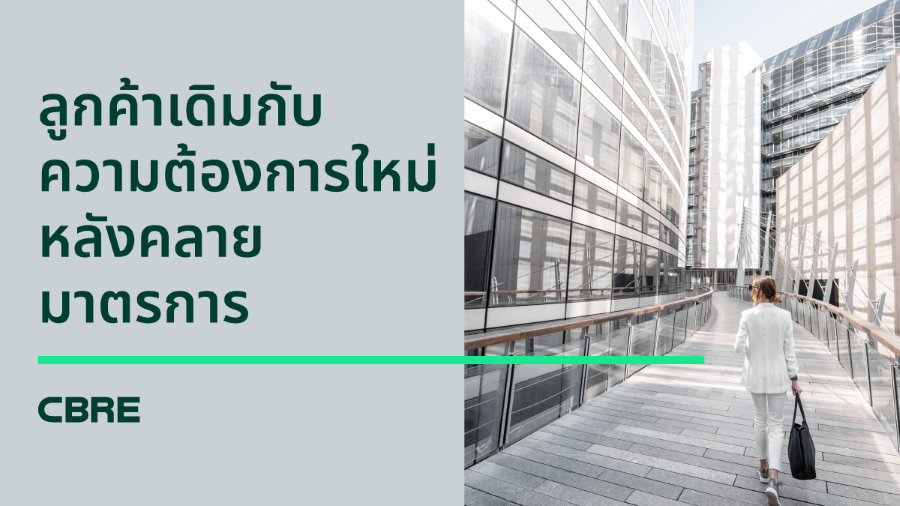 ซีบีอาร์อี ที่ปรึกษาด้านอสังหาริมทรัพย์ พบว่าจากการที่หลายธุรกิจค่อยๆ กลับมาเปิดให้บริการอีกครั้ง หลังจากมีการผ่อนคลายมาตรการจากภาครัฐ ตลาดอสังหาริมทรัพย์เองก็จะเริ่มมีกิจกรรมต่างๆ เกิดขึ้น แต่การกลับมานั้นมาพร้อมกับการเปลี่ยนกระบวนทัศน์ที่ได้รับอิทธิพลอย่างมากจากรูปแบบการใช้ชีวิตในช่วงหนึ่งปีครึ่งที่ผ่านมา ซึ่งเป็นระยะเวลาที่นานเพียงพอสำหรับการเปลี่ยนพฤติกรรมของผู้คนในระยะยาว เมื่อเปิดต้อนรับลูกค้าหรือผู้เช่าอีกครั้ง เราอาจจะพบกับลูกค้าคนเดิมที่มาพร้อมกับความต้องการใหม่ๆ