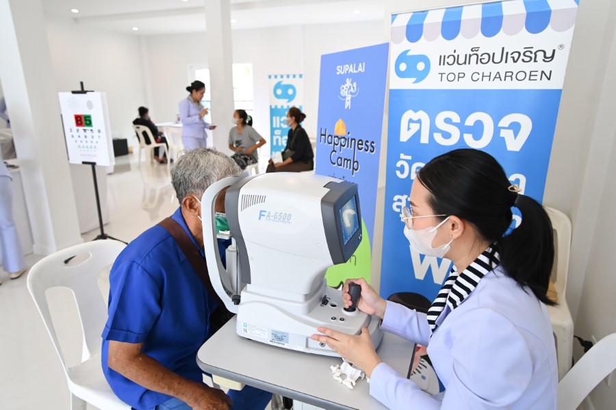 ด้านแว่นท็อปเจริญ นายสุวัฒน์ อภิราชกมล ผู้บริหารบริษัท ร่วมเจริญพัฒนา จำกัด (มหาชน) กล่าวว่า แว่นท็อปเจริญ รู้สึกเป็นเกียรติและยินดีเป็นอย่างยิ่ง ที่ได้ร่วมเป็นส่วนหนึ่งในการสนับสนุนกิจกรรมเพื่อสังคม “แว่นสร้างสุข” โดยได้นำทีมผู้เชี่ยวชาญด้านสายตา พร้อมเครื่องมือและอุปกรณ์ตรวจวัดสายตาที่ทันสมัยครบครัน ลงพื้นที่ให้บริการตรวจวัดสายตาและประกอบแว่นใหม่เฉพาะบุคคลให้แก่ทีมงานก่อสร้าง รวมถึงบุคคลทั่วไปที่มีปัญหาสายตาจากชุมชนโดยรอบและพระสงฆ์ ได้มีโอกาสเข้าถึงบริการด้านสายตาและใช้ประโยชน์จากแว่นตาที่ดีมีคุณภาพ เพื่อการมีสุขภาพดวงตาที่ดี มองเห็นชัดเจน โดยแว่นท็อปเจริญพร้อมมุ่งมั่นเดินหน้าช่วยเหลือสังคมตามเจตนารมณ์ในการดูแลสุขภาพสายตาเพื่อสังคมไทยมาอย่างต่อเนื่องยาวนาน เพื่อการมองเห็นที่สดใส กว้างไกล และเข้าถึงได้ของทุกคนในสังคม