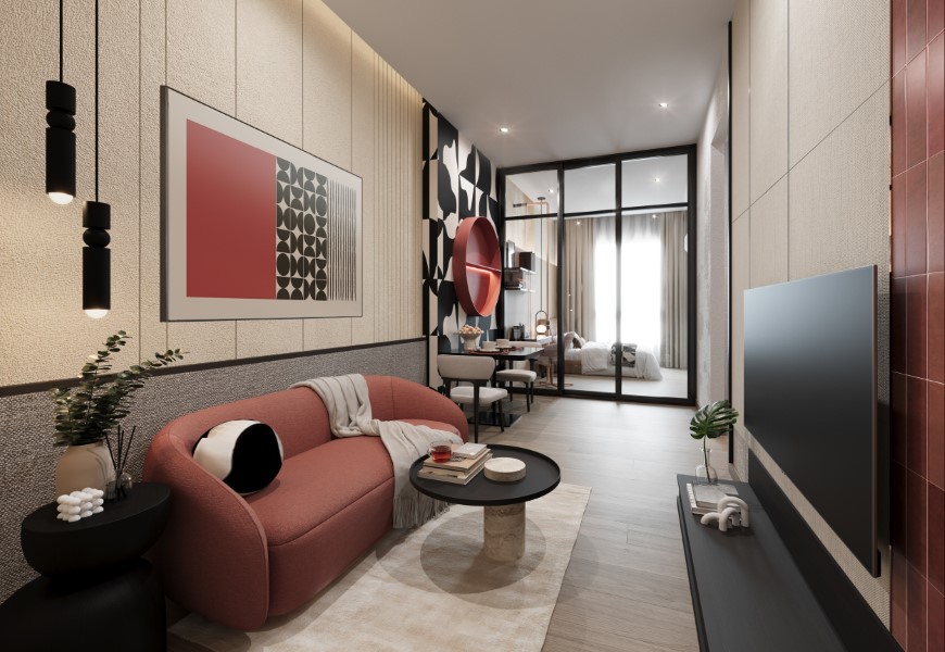 โครงการโดดเด่นด้วยอาคารสูง 32 ชั้น อวดโฉมแบบห้อง 1-2 ห้องนอน ครบทุกฟังก์ชัน ตั้งแต่ห้อง 1 ห้องนอน กับครั้งแรกของผังห้องใหม่ “Well Organized” ที่ออกแบบพิเศษเฉพาะโครงการนี้ ไปจนถึงห้อง 1 Bedroom Plus พร้อมฟังก์ชันยอดนิยม “Favorite Corner” ปรับมุมอเนกประสงค์เป็นห้องตามกิจกรรมที่ชอบได้ และสำหรับผู้ที่มองหาพื้นที่ที่กว้างขึ้น รองรับการขยายครอบครัว ยังมี 2 ห้องนอน ให้เลือกทั้งแบบ 2 ห้องนอน 1 ห้องน้ำ และ 2 ห้องนอน 2 ห้องน้ำ เพื่อความสะดวกสบายที่แตกต่างตามการใช้งาน โดยการออกแบบภายในห้องให้ความรู้สึกโล่ง โปร่งสบาย ด้วยเพดานสูง 2.7 ม.