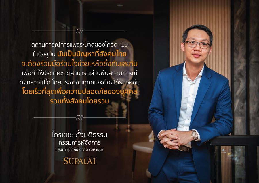 บริษัท ศุภาลัย จำกัด (มหาชน) ผู้นำในธุรกิจพัฒนาอสังหาริมทรัพย์มาอย่างยาวนานก้าวสู่ปีที่ 33 ที่ผ่านมาดำเนินธุรกิจด้วยจิตสำนึกความรับผิดชอบต่อสังคมขององค์กร ภายใต้แนวคิด “ศุภาลัย ใส่ใจ…สร้างสรรค์สังคมไทย” บริษัทได้คำนึงถึงความปลอดภัยของ Stakeholder ทุกกลุ่มมาอย่างต่อเนื่อง อีกทั้งได้ส่งต่อกำลังใจให้กับบุคลากรทางการแพทย์ รวมทั้งผู้ป่วยโควิด-19 ผ่านกิจกรรมหลากหลายรูปแบบที่เป็นประโยชน์ต่อสังคมอย่างแท้จริง และในสถานการณ์การแพร่ระบาดของโรคโควิด-19 ระลอกที่ 3 ครั้งนี้ บริษัทจึงได้สานต่อภารกิจ ส่งกำลังใจ และร่วมมือกับพันธมิตรทางธุรกิจ ดำเนินการส่งต่อความช่วยเหลือให้ทุกภาคส่วนให้สามารถฝ่าวิกฤตไปด้วยกัน