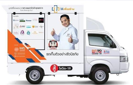 • สนับสนุนโครงการ “รถเก็บตัวอย่างชีวนิรภัย” นวัตกรรมล่าสุด และเป็นคันแรกในประเทศไทยที่สามารถตรวจผลได้ครั้งละ 3 เคส ออกแบบโดยศูนย์นวัตกรรม KMITL GO FIGHT FOR COVID-19 ศูนย์วิจัยและออกแบบ งานสร้างสรรค์ (Research and Creative Design Center: RCDC) สจล. ร่วมกับ หมอแล็บแพนด้า ทนพ.ภาคภูมิ เดชหัสดิน เพื่อนำไปใช้ประโยชน์ทางการแพทย์ในการตรวจหาเชื้อโควิด-19 เชิงรุก โดยร่วมบริจาคเงินสนับสนุนโครงการมูลค่า 100,000 บาท
