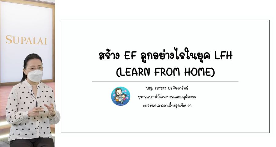 บริษัท ศุภาลัย จำกัด (มหาชน) เปิดเวที งานสัมมนาออนไลน์ SUPALAI FOR ALL แบ่งปันความรู้สู่สังคมไทย และผู้เกี่ยวข้องทุกภาคส่วน เพื่อพร้อมรับมือจากผลกระทบวิกฤตโควิด ถ่ายทอดสด (Live) ผ่าน Facebook : Supalai Society เมื่อวันที่ 28 สิงหาคมที่ผ่านมา กับสุดยอด Influencer ที่มียอดผู้ติดตามจำนวนมาก โดยคัดสรรหัวข้อที่น่าสนใจ 2 หัวข้อ เริ่มต้นงานสัมมนาด้วยหัวข้อ “สร้าง EF ลูกอย่างไรในยุค LFH (Learn from Home)” โดย พญ.เสาวภา พรจินดารักษ์ กุมารแพทย์พัฒนาการและพฤติกรรม รพ.สมิติเวชศรีนครินทร์ และเจ้าของเพจหมอเสาวภาเลี้ยงลูกเชิงบวก ให้เกียรติเป็นวิทยากรแชร์ความรู้และเทคนิคการเลี้ยงลูก อีกทั้งตอบปัญหาทุกคำถามที่คุณพ่อคุณแม่จะต้องปรับตัวเพื่อรับมือกับการเรียนรู้ของลูกในโลกออนไลน์ยุค Learn from Home
