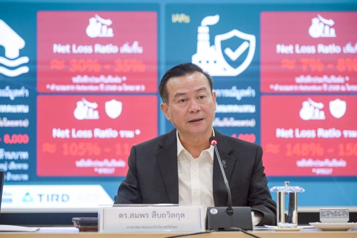 ขณะเดียวกัน จากการติดตามสถานการณ์และประเมินผลกระทบจากมหาอุทกภัยภาคใต้ จากข้อมูลของสำนักงาน คปภ. ณ วันที่ 15 ธันวาคม 2568 พบว่ามีจำนวนกรมธรรม์ที่มีการเรียกร้องค่าสินไหมทดแทนรวม 62,147 ราย คิดเป็นมูลค่าความเสียหายประมาณ 16,029 ล้านบาท และเมื่อรวมการประเมินความเสียหายเพิ่มเติม คาดว่ามูลค่าความเสียหายรวมจากเหตุอุทกภัยครั้งนี้จะอยู่ในช่วงประมาณ 23,000–27,000 ล้านบาท โดยแบ่งเป็น รถยนต์ที่ได้รับความเสียหายประมาณ 25,000 ถึง 30,000 คัน (เฉพาะในพื้นที่อำเภอหาดใหญ่ประมาณ 9,000 ถึง 12,000 คัน) มีมูลค่าความเสียหายประมาณ 11,000–13,000 ล้านบาท และประกันภัยทรัพย์สินรวมประมาณ 12,000–14,000 ล้านบาท อย่างไรก็ตาม เมื่อพิจารณาในเชิงสัดส่วนกรมธรรม์ที่ได้รับผลกระทบยังอยู่ในวงจำกัด โดยประกันภัยรถยนต์ภาคสมัครใจในพื้นที่น้ำท่วมมีสัดส่วนเพียง 6.4% และประกันภัยทรัพย์สิน 11.7% ของกรมธรรม์ทั้งหมด ซึ่งยังไม่ส่งผลกระทบต่อเสถียรภาพของระบบประกันวินาศภัยไทย โดยอุตสาหกรรมยังมีอัตราความเพียงพอของเงินกองทุนอยู่ในระดับสูงกว่า 200% และภาระสินไหมทดแทนหลังการประกันภัยต่ออยู่ในระดับที่สามารถบริหารจัดการได้เมื่อเทียบกับเหตุการณ์ใหญ่ในอดีต