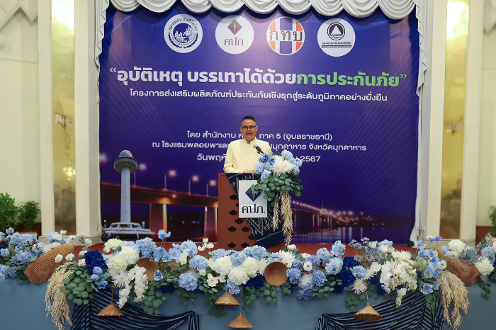 รองเลขาธิการ ด้านกำกับคนกลางฯ เปิดเผยว่า สำนักงาน คปภ. มีนโยบายในการส่งเสริมความรู้สร้างความเข้าใจให้ประชาชนทั่วประเทศ ตระหนักและเห็นความสำคัญของการทำประกันภัยที่เป็นเครื่องมือในการบริหารความเสี่ยงให้กับชีวิตและทรัพย์สินของประชาชน ดังนั้น จึงได้ดำเนินโครงการส่งเสริมผลิตภัณฑ์ประกันภัยเชิงรุกสู่ระดับภูมิภาคอย่างยั่งยืน ประจำปี 2567 เพื่อให้ประชาชนทุกกลุ่มเป้าหมายสามารถเข้าถึงระบบประกันภัยในบริบทของพื้นที่ได้อย่างทั่วถึง และครั้งนี้นับเป็นครั้งที่ 9 โดยได้เลือกจังหวัดมุกดาหารเป็นจังหวัดสุดท้ายของการดำเนินโครงการฯ เนื่องจากเล็งเห็นว่าชาวจังหวัดมุกดาหาร มีทรัพยากรธรรมชาติและศิลปวัฒนธรรมที่งดงามอยู่ในที่เดียวกัน รวมทั้งยังมีสะพานมิตรภาพไทย-ลาว แห่งที่ 2 ที่เป็นส่วนหนึ่งของเส้นทางเศรษฐกิจทางตะวันตกและตะวันออกที่ช่วยสร้างความเติบโตให้กับระบบเศรษฐกิจของประเทศ ซึ่งจากข้อมูลพบว่าจังหวัดมุกดาหาร มีประชากรอาศัยกว่า 350,000 คน มีสถิติการเกิดอุบัติบนท้องถนนอยู่ในระดับสูงซึ่งเป็นปัญหาสำคัญของจังหวัด ประกอบกับมีผู้ทำประกันภัยเพียง 85,000 คน ดังนั้น แสดงให้เห็นว่าชาวจังหวัดมุกดาหาร ยังมีการใช้ประกันภัยเป็นเครื่องมือในการบริหารความเสี่ยงทางการเงินอย่างจำกัด