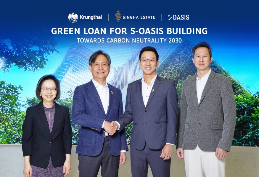 บริษัท สิงห์ เอสเตท จำกัด (มหาชน) หรือ ‘S’ ได้รับการอนุมัติสินเชื่อสีเขียว (Green Loan) เป็นครั้งแรกจากธนาคารกรุงไทย ด้วยวงเงิน 1,900 ล้านบาทโดยมีวัตถุประสงค์หลัก เพื่อนำไปลงทุนในอาคารสำนักงาน S-OASIS ที่ออกแบบด้วยเทคโนโลยีอัจฉริยะที่เป็นมิตรกับสิ่งแวดล้อม ความสำเร็จนี้เน้นย้ำถึงพันธกิจของสิงห์ เอสเตท ในการเติบโตอย่างยั่งยืน รวมถึงการรับผิดชอบต่อสิ่งแวดล้อมและสังคม เพื่อสร้างคุณค่าและผลประโยชน์แก่ธุรกิจผู้เช่า และชุมชนโดยรอบ